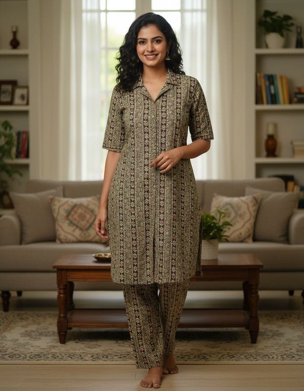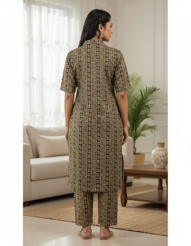Mayas Cotton Cordset with Collar Neck Black and Light Colour Mix