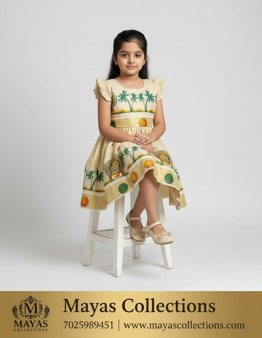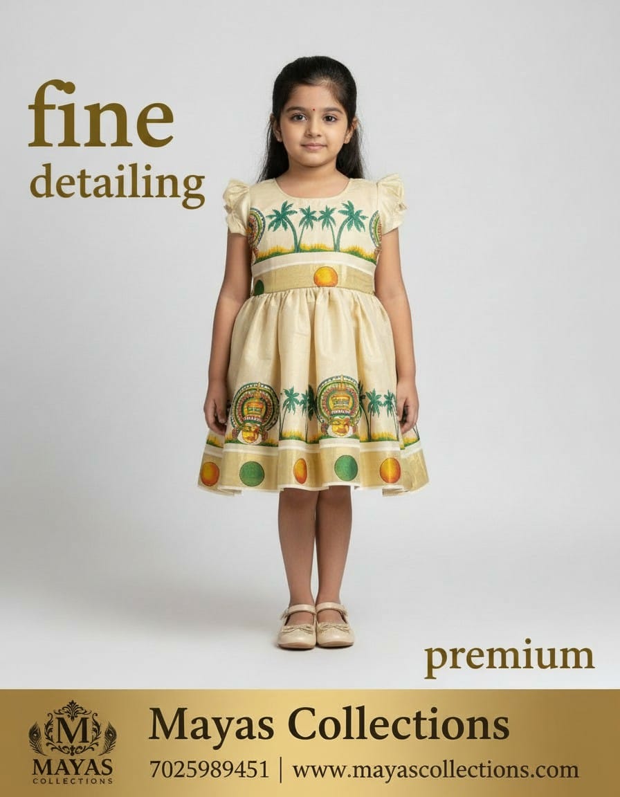 Mayas traditional printed frock is a classic, one-piece garment designed for children, generally consisting of a fitted bodice attached to a gathered or pleated skirt that flares out. In modern contexts, particularly in India, it refers to ethnic, festive wear for young kids girls, often featuring rich tissue fabrics and intricate embellishments.