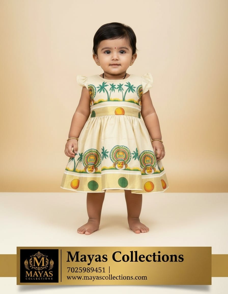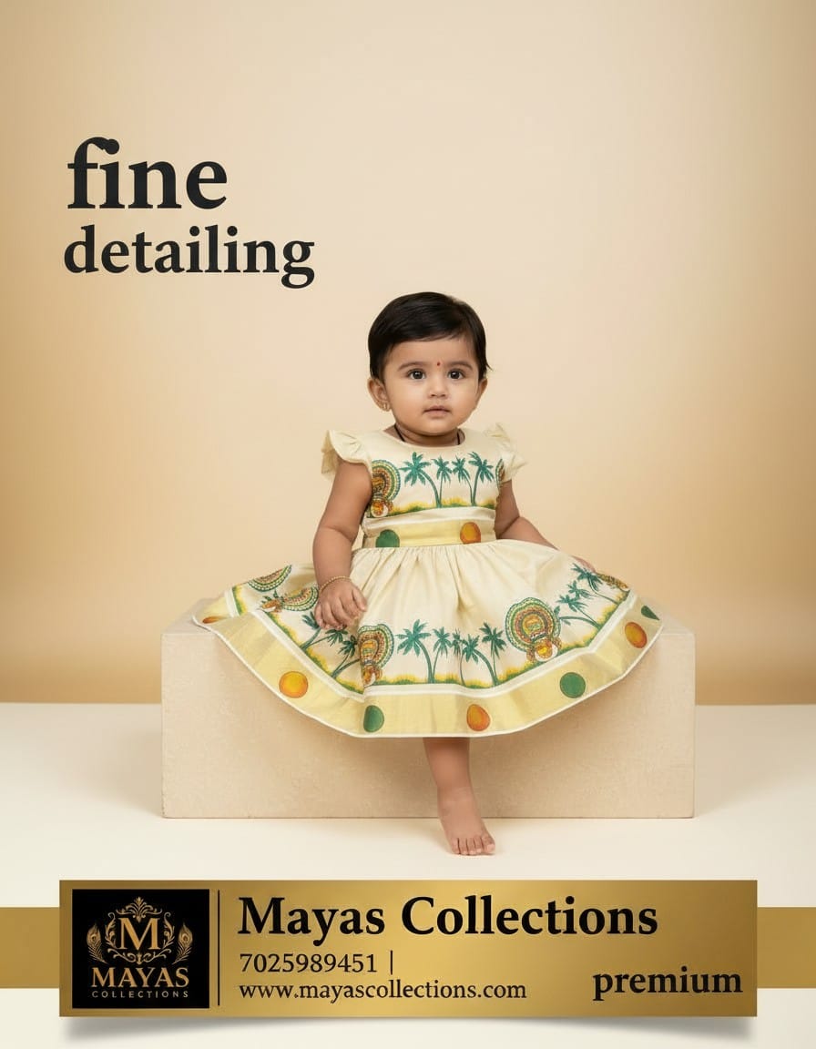 Mayas traditional printed frock is a classic, one-piece garment designed for children, generally consisting of a fitted bodice attached to a gathered or pleated skirt that flares out. In modern contexts, particularly in India, it refers to ethnic, festive wear for young kids girls, often featuring rich tissue fabrics and intricate embellishments.