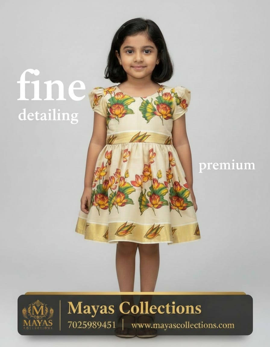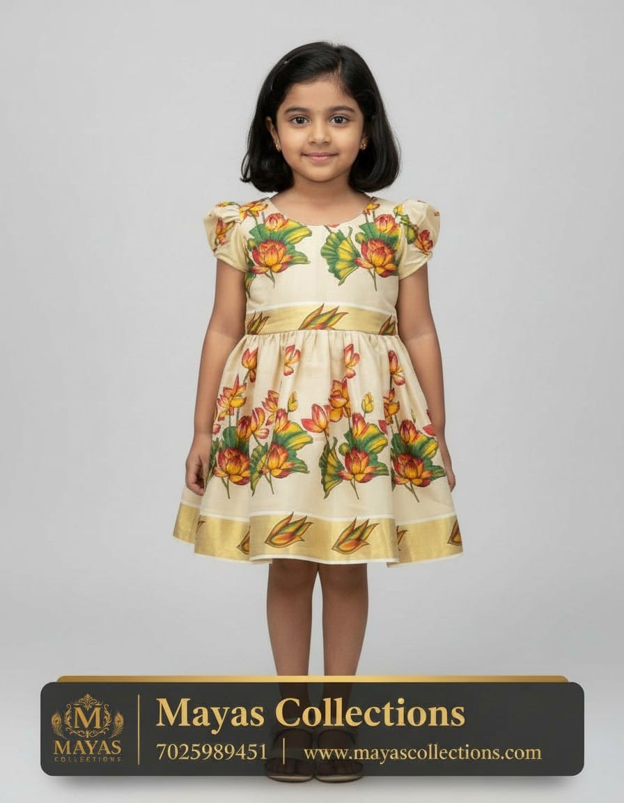 Kerala Traditional Lotus Print Frock for Girls